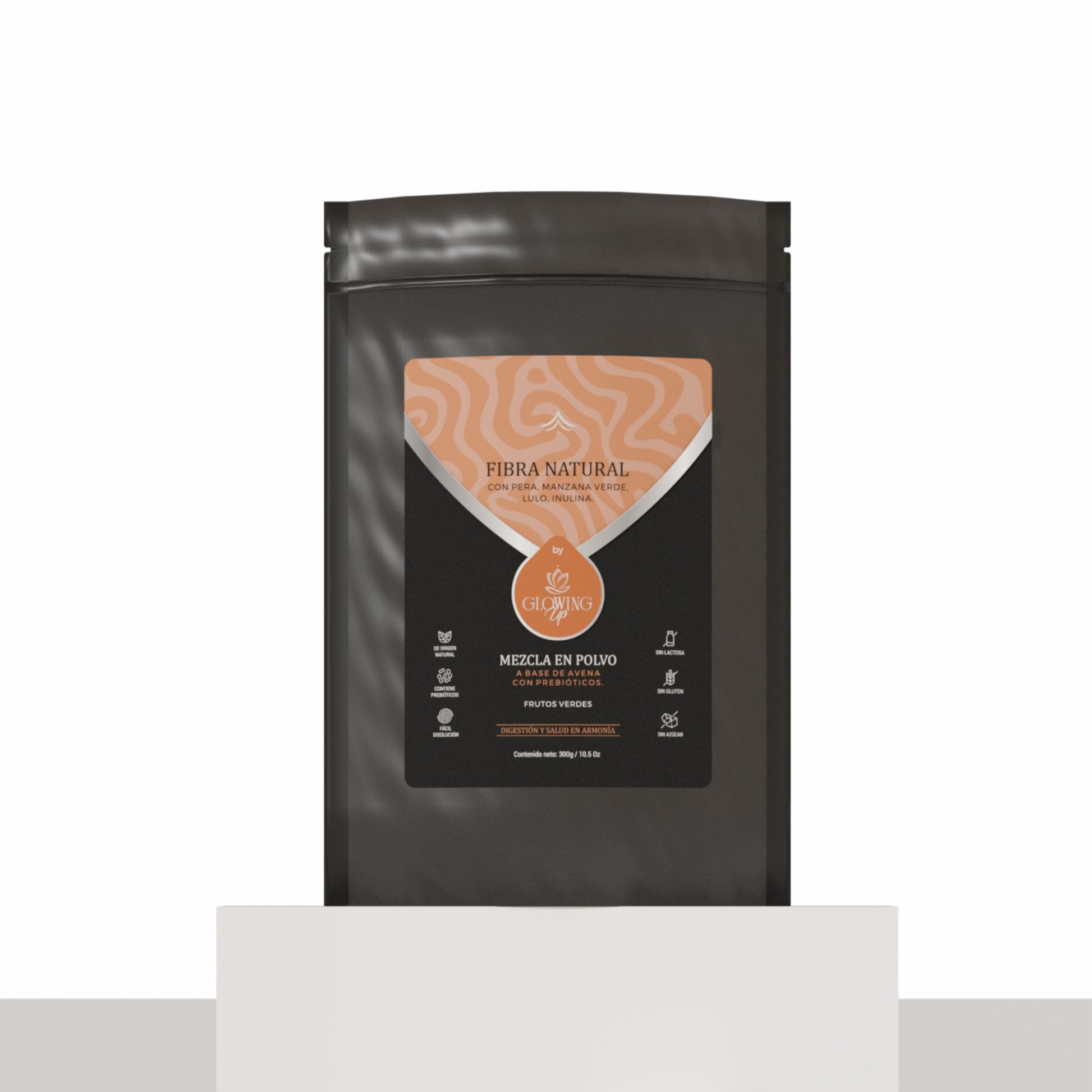 Fibra Natural by Glowing Up es una mezcla prebiótica y antioxidante que combina ingredientes de origen natural avena, pera, manzana verde, lulo e inulina— cuidadosamente seleccionados para mejorar la digestión, prolongar la saciedad y equilibrar los niveles de azúcar y colesterol.
