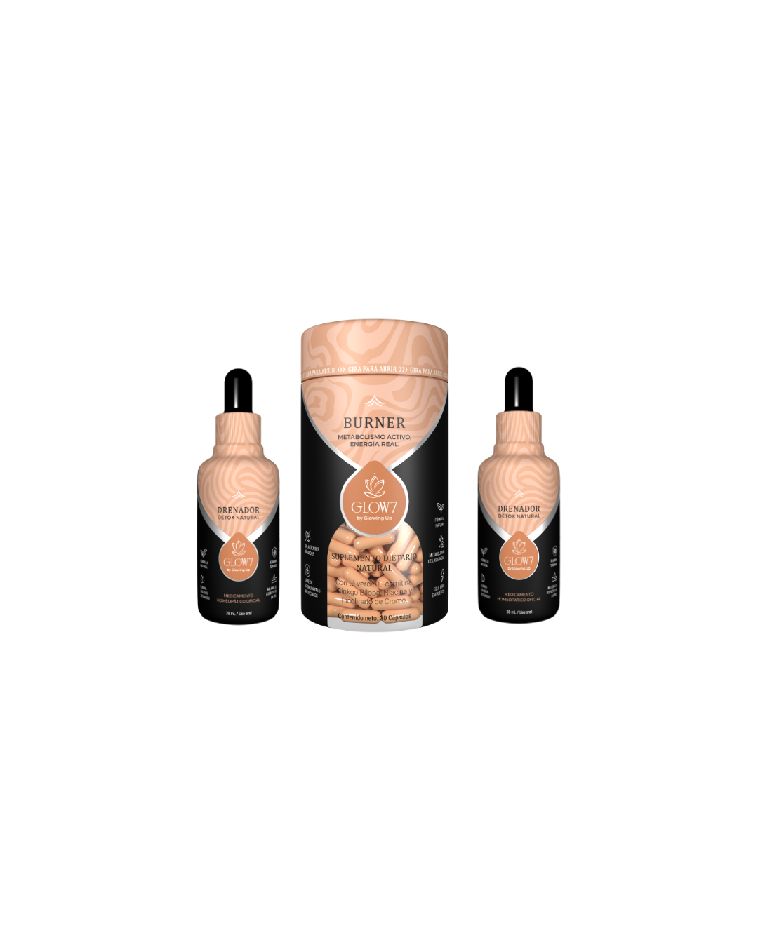 El Quemador Glow7 es un suplemento natural diseñado para activar el metabolismo, apoyar la quema de grasa y mejorar el rendimiento físico y mental sin alterar tu equilibrio interno.